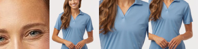 * 100% soft-spun polyester with color secure(r) technology that helps prevent dye migration * Soft cottony feel * Ladies' Fit * * Non branded tag-free label * V-neck collar * Tonal topstitching * Set-in sleeves with angled shoulder seam for mobility and comfort