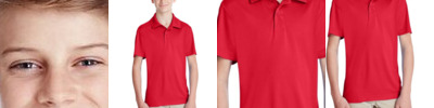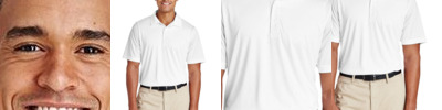 3.5 oz./yd² (US), 5.8 oz./L yd (CA), 100% polyester interlock Moisture-management properties UPF 40+ protection Team fit Cationic dyes for superior brightness and excellent colorfastness Three-button placket Dyed-to-match buttons Transitioning from heat-seal label to tear away label