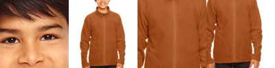 6 oz./yd² (US), 10 oz./L yd (CA), 100% polyester microfleece Anti-pill finish Center front reverse coil zipper with semi-autolock rubber pull tab Triple-needle coverstitch at raglan sleeve and front pockets Inseam front side pockets Self-fabric gusset at cuffs Double-needle stitch at bottom hem