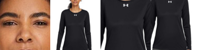 - UA woven label centered on left sleeve hem and UA heat seal center back neck