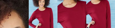 - Coverstitched shoulders, armholes, ribbed cuffs and bottom band