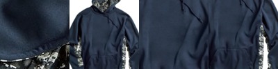 - Solid fleece body with charcoal fleck hood, drawcord and sleeves