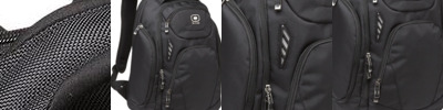 - 600D poly/420D dobby polyFlapover construction with double lock closure Interior padded laptop compartment Padded tablet/e-reader sleeve Easy access zippered pockets for business essentials Dual side beverage/accessory holsters Adjustable and padded shoulder strap Top handleLaptop sleeve: 11"h x 16"w x 1.5"d