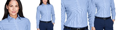 3.4 oz., 55% cotton, 45% polyester; Fine yarn count shirting; True Non-iron performance straight from the dryer; stain release finish; Classic Fit for professional appearance; Patented pucker-free taped seams; Fused collar cuffs and placket; Split back seam with bias cut back yoke; straight collar; pearlized buttons;