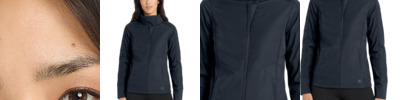 - 100% poly woven shell bonded to a 100% poly knit back with a laminated film insert for wind and water resistance