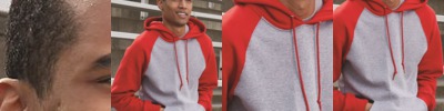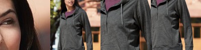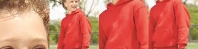 8.2 oz., 55/45 cotton/polyester; Matching hood; Stitched V neck; Black drawstring; Rib cuffs and hem; Pouch pocket;