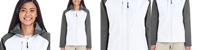 96% polyester, 4% spandex bonded to brushed jersey; Sleeves, hood and panels have the Tech Print pattern detail; Adjustable hood; Adjustable drop tail hem with hidden drawcord; Dual front and chest zippered pockets; Dual inside pockets;
