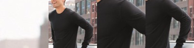 - Seamless 1x1 ribbed collar with double-needle coverstitching on front neck