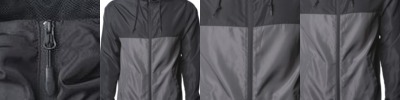 4 oz., 100% snag protection heathered polyester; moisture wicking; tagless; back neck tape for clean finish; center front coil zipper with semi-autolock slide and rubber pull;