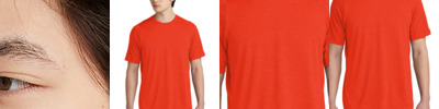 3.5 oz./yd², (US), 5.8 oz./L yd (CA), 100% polyester moisture-management/antimicrobial performance fabric; Self-fabric collar; Double-needle stitched hem with tack; Tear away label;