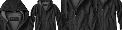 12 oz., 100% cotton Boulder Cloth™ canvas ; Textured thermal lining for extra warmth ; Inside cell phone and patch pockets with snap closure ; Drop tail with canvas facing to secure the lining; Articulated elbows and three-piece hood ;