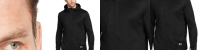 100% polyester, all season soft shell ; Wind resistant ; Water resistant, DWR finish ; Breathable ; 4-way stretch ; Media port ; Adjustable three-piece hood designed to contour for a comfortable fit; Zippered chest and hand pockets; Adjustable cuff ; Adjustable hem; Auto lock zipper with easy grab puller; Media port;
