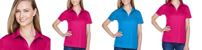 100% polyester; Smooth knit with true hue technology™ on front and back panels; 92% polyester /8% spandex pinhole mesh inserts for breathability ; True hue technology™ prevents dye migration; Wicks Moisture; Pad print label ; Two-button placket; Contrast color inserts and piping ;