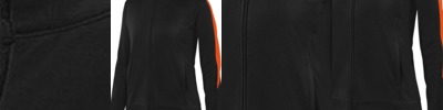 Heavyweight 100% polyester matte brushed tricot ; Ladies' fit ; Heat sealed label ; Center front zipper ; Contrast color inserts on collar and shoulder ; Set-in sleeves ; Front seam pockets ;