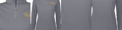 100% polyester heathered wicking knit top body, collar and sleeves ; 100% polyester wicking knit solid bottom body ; Wicks moisture away from the body ; Pad print label ; Quarter-zip pullover style; Self-fabric collar ; Set-in sleeves ;