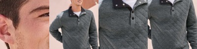 - 2x1 ribbed collar, V-notch, cuffs and waistband