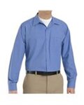 - Two button-thru, hex-style pockets with angled bartacks, bartacked pencil stall on left pocket