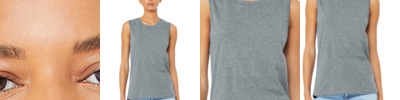 4.3oz., 52% cotton 48% polyester ; 30 singles ; Side seams; retail fit; Tear-away label; High neck line; Cutoff shoulders; Made in a W.R.A.P. certified factory;