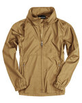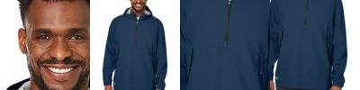 90% polyester, 10% spandex soft shell with a soft interior; Water and wind-resistant; Zippered chest and hand pockets; Auto-lock zipper with easy-grab zipper pull; Media port; Adjustable cuffs; Interior Cell Phone Pocket w/ Hook & Loop Closure 8"L x 6"W;