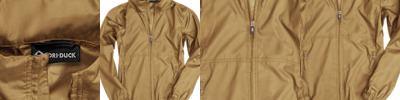 10 oz., super-duty 100% cotton duck; Medium-weight quilt lined taffeta; Water-repellent finish; Full-length heavy-duty brass zipper; Triple-needle stitched main seams; Double inside chest pockets; Insulated "High Back" design;