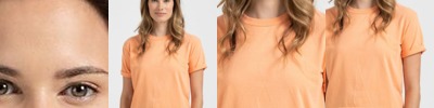 3.8 oz., 50% polyester/38% cotton/12% rayon tri-blend knit; Fits loose to body; Tear away label; Scoop neck; Dropped shoulder sleeves for mobility and comfort; Contoured bottom; Ladies' fit;