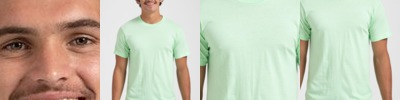 3.8 oz., 50% polyester/38% cotton/12% rayon tri-blend knit; Fits loose to body; Tear away label; Crewneck; Set-in sleeves with rolled forward shoulder seam;