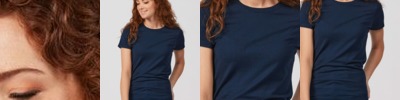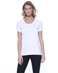 3.5 oz., 100% combed and ring-spun liquid cotton; 40 singles; Optimal stretch and recovery; Fashion fit; Side seams; U-neck; Scalloped hem; Loose fit; Tear-away label; Made in a W.R.A.P. certified factory;