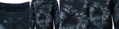 6.5 oz., 85% ringspun cotton, 15% polyester; Raw-edge waist; Hand-dyed color combinations; No two are exactly alike; Wash separately;