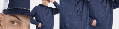 - Kangaroo pocket with woven front flap covered zippered pocket