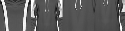 - Three-piece hood with scuba collar and inside drawcords