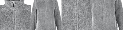 7.5 oz., 100% polyester multicolored shag; Unconcealed nylon zipper with wind flap; Stand-up self-collar, binding on cuffs; Welt pockets, self-fabric side gussets; Single needle stitched throughout; Drop tail hem; Tear away label;