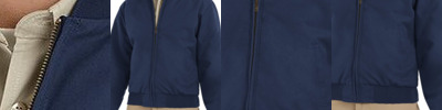 - Two-piece, insulated, stand-up collar with concealed snap closure
