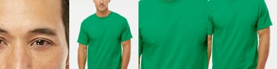 6 oz., 100% USA cotton, 18 singles; Heather Grey is 90% USA cotton/10% polyester; Charcoal Grey and Safety Green are 50% USA cotton/50% polyester; Shoulder-to-shoulder neck tape; 1" double-needle stitched sleeve and bottom hems; Tear away label; 7/8" Seamless non-topstitched collar; Quarter-turned to eliminate center crease; Forward-thrusted shoulder seam for comfortable neck fit; Classic fit;