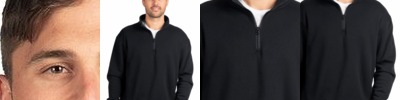100% polyester wicking knit * Wicks moisture * Tag-free label * Asymmetrical contrast color yoke
