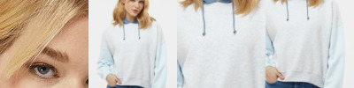 W23716 Women's Sueded Fleece Colorblocked Crop Hooded Sweatshirt