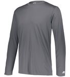 4.1 ounce 100% polyester interlock * Dri-Power(r) Moisture Wicking Technology * Heat sealed label * "R RUSSELL" on left sleeve end * Self-fabric crew neck collar * Garment protects against the sun with 30+ UPF * Set-in sleeves