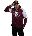 * 7.6 ounce 55% polyester/41% cotton/4% rayon, super soft fleece * Ladies' fit * Woven label * Exterior faux leather logo loop label * Funnel neck with metal tipped drawcord in sizes S-2XL * Raglan sleeves * Front double weld pockets * Striped spandex blend rib-knit cuffs and bottom hem * Side vents