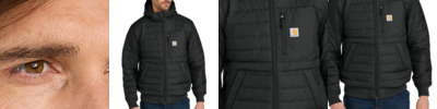 Tougher than the weather, this water- and wind-resistant jacket has insulation for warmth and is built for enhanced durability. 1.8-ounce, 100% nylon CORDURA ® shell Rain Defender ® durable water repellent (DWR) Wind Fighter ® technology tames wind Nylon lining quilted to 120-gram, 100% polyester insulation for warmth Adjustable hood Reverse coil center front zipper Left chest zippered patch pocket Two hand pockets with hidden snap closures Two interior pockets: one zippered, one hook and loop closure Rib knit cuffs and hem Carhartt-strong, triple-stitched main seams Carhartt label sewn on chest pocket Carhartt Warmth Rating Earned: Level 3â¿¿Warmest Relaxed fit