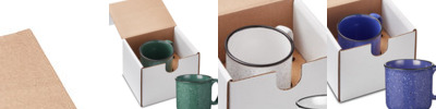 - Kraft gift box packed with one 12 oz. (354 mL) coffee mug