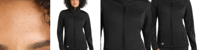 - 100% poly stretch shell bonded to textured grid fleece with a laminated film insert for wind and water resistance