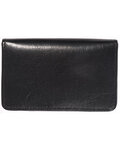 - Holds ID/business card card behind clear PVC window on back panel hidden by Leather flap