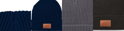 - 100% Acrylic rib knit beanie with PU faux leather patch on front cuff