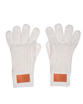 Acrylic rib knit gloves with PU patch on at each wrist for deboss