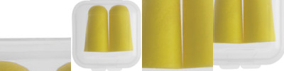 - Square PP plastic pocket-sized case with one set of reusable ear plugs