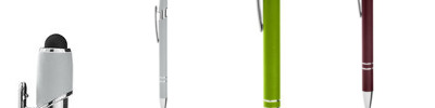- Aluminum twist-action ballpoint pen with soft Silicone tip for use with iPads®, iPhones®, tablets and other touchscreen devices