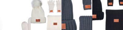 LG905 Three-Piece Rib Knit Fur Pom Winter Set
