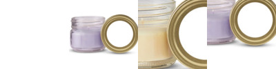 - Set includes two wax candles secured inside a 3 oz. Mason jar with gold lid