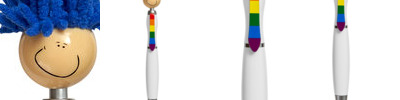 - Fun multi-function click-action ballpoint pen with fidget mop-top spinner smiley face head