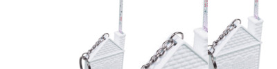 Includes metal key ring attached and features stock "house'' design In front side of plastic mold