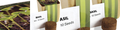 Each set includes a flower pot-planter, a compressed soil wafer and Basil seed packet
